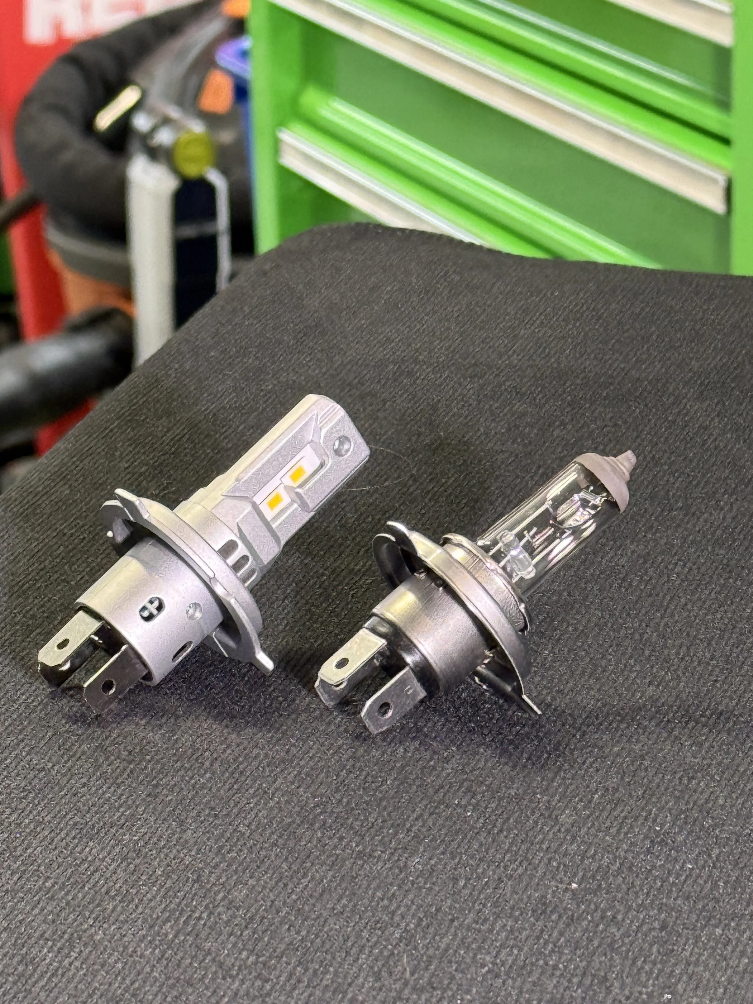 Our retrofit LED bulbs are designed to reproduce color temperature equivalent to a halogen bulb, at a safe brightness equivalent to an 80 watt halogen bulb, while still providing a many benefits over a standard-equipment (~60W) headlight. They have been tested to provide a good beam pattern in our available E-Code housings. These housings are made to superior European lighting standards with a better beam pattern than old DOT lenses, but do not meet US regulations. Federal regulations require headlight fixtures to be designed in a paired/integrated fashion. To maintain cost effectiveness, serviceability, and compatibility with established bulb standards, ours are not. Vehicles with antique/collector registration may be exempt to inspection and lighting standards, particularly for show-and-display use. Please consult your local authorities for local regulations/requirements. Otherwise all aftermarket LED bulbs are intended for off-road use only, even in DOT compliant housings. You must adjust your headlights after replacement to ensure a level and properly aimed beam pattern and to not be an a-hole to other drivers.